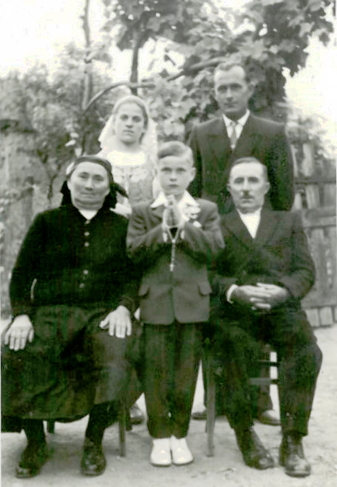 A kép 1958-ban elsőáldozáskor készült. Kép szépen mutatja, hogy az asszonyok otthoni kendőt, azaz hátrakötőt viselnek.