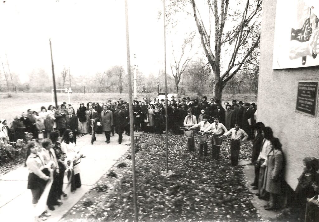 A faluvezetés, zenész úttörők, koszorúzó úttörők.