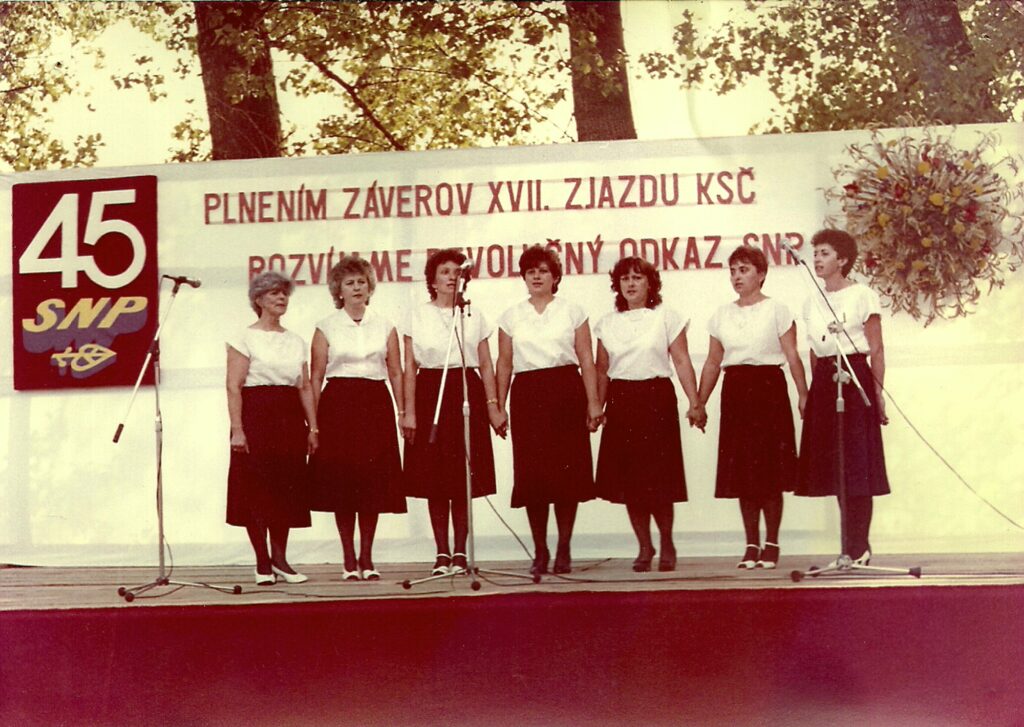 MENYECSKEKÓRUS – 1989 – Kiss Ernőné, Lukács Jánosné, Tóth Lászlóné, Gál Ivánné, Gál Jenőné, Lukács Lajosné, Bazsó Kálmánné (vezető)