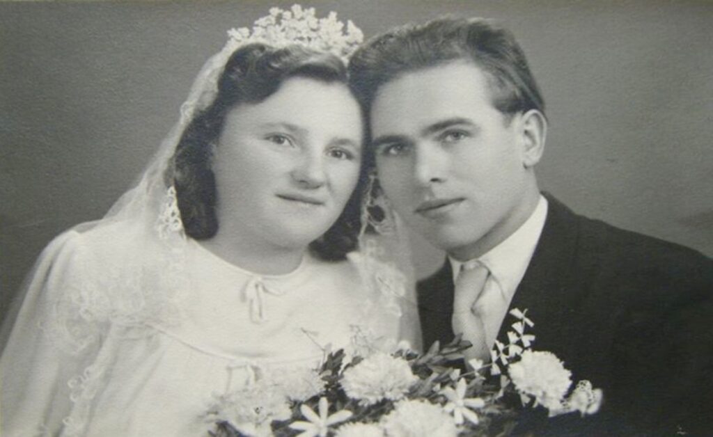 Bálint Jolán és Fodor József esküvői képe Nagybalogról 1949-ből.