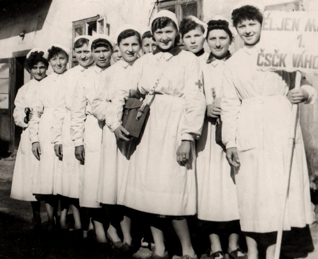 A Vágai Vöröskereszt tagjai, jobbról balra: Forró Jácinta, Adamkó Mária, Magyerka Gizella, Sandula Mónika, Lukács Edit, Sas Mária, Vöröskői Margit, Zsigó Erzsébet, Károly Edit.