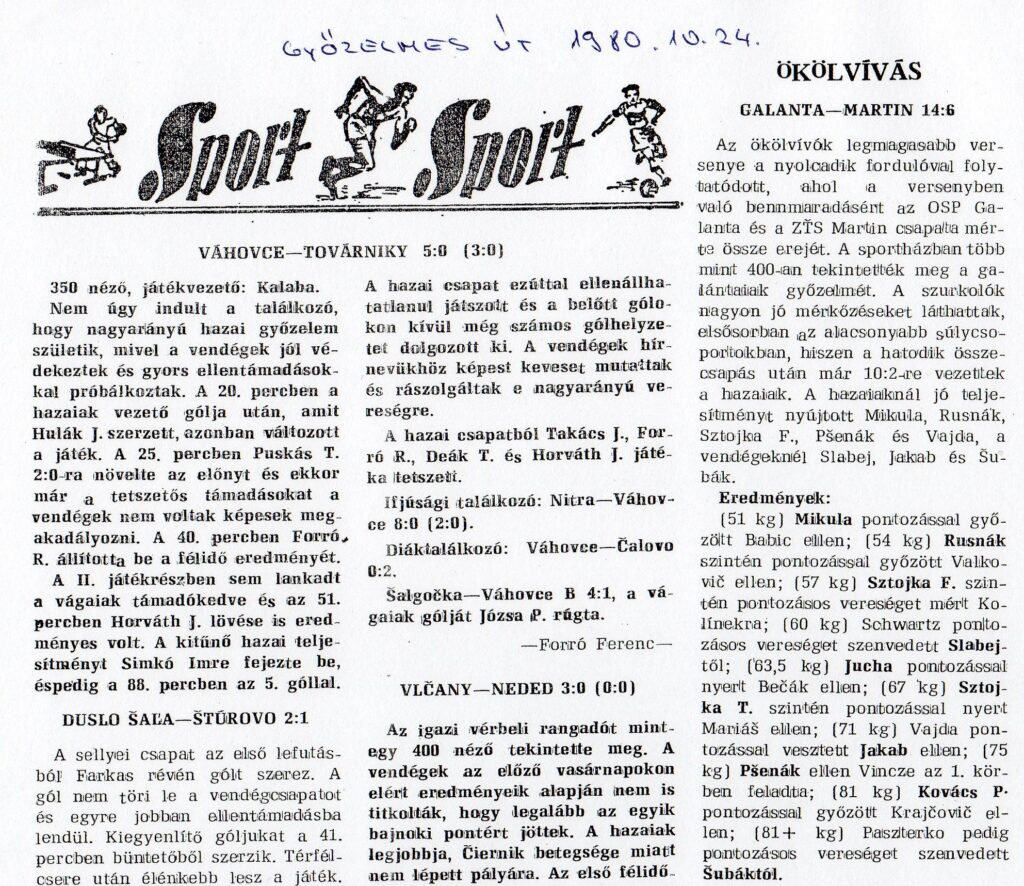 Forró Ferenc, Győzelmes Út című hetilap 1980. október 24-i számában