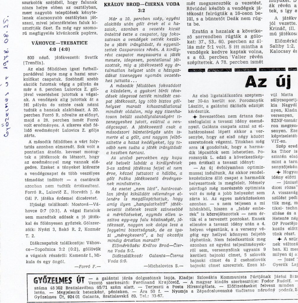 Cikkíró: Forró Ferenc írása a Győzelmes Út c. hetilap, 1978. augusztus 25-i számában