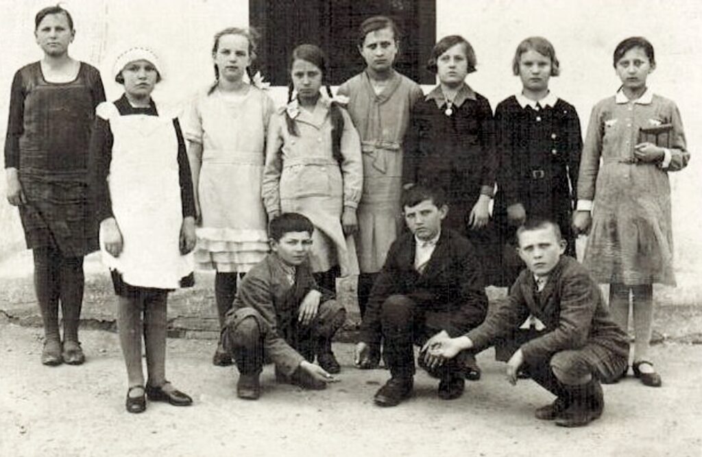 A vasárnapi iskola előtt a felsőszeli evangélikus gyermekek golyózással múlatták az időt.