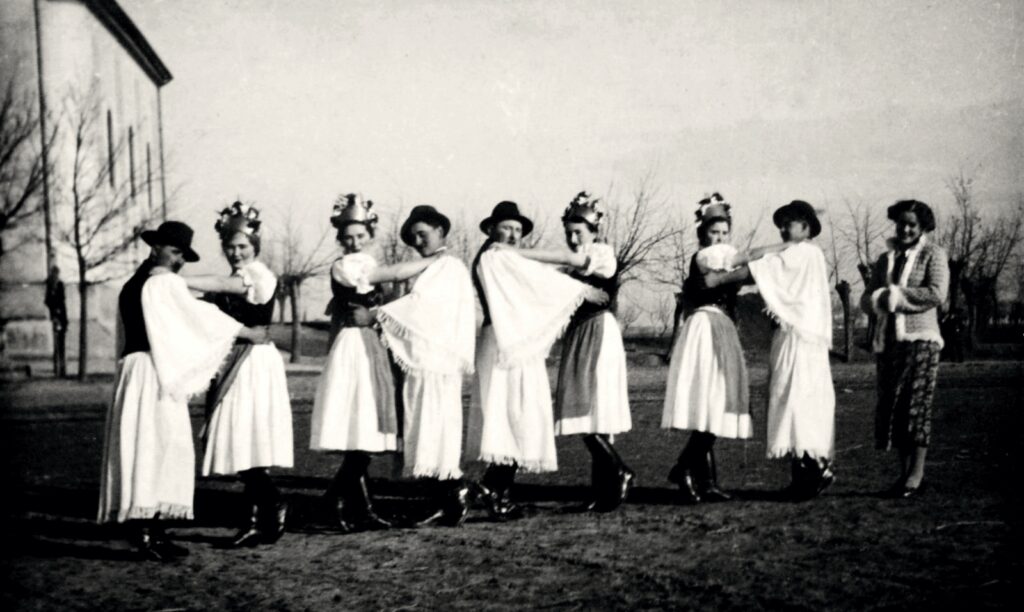 Tánccsoport és vezetőjük, Tóth Etelka.