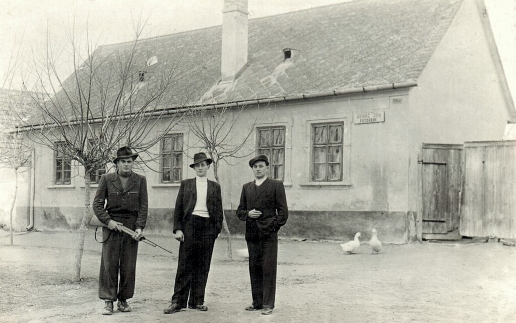 A kora tavaszi vasárnap délután az éppen arra sétáló három jóbarátot kapta lencsevégre. Balról Szabó Aladár, Szabó József és Szőcs Lajos. A fotóst nem zavarta a kacsák békés totyogása.