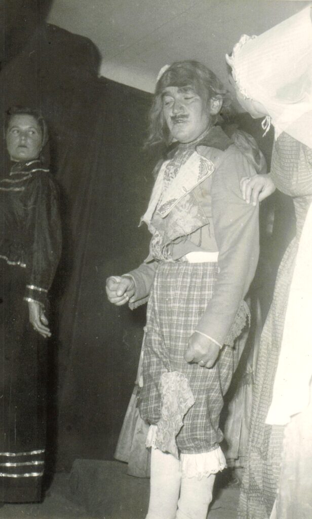 Rendezte: Fehér József, Szereplők: Lovas Margit, Takács Erna, Dobosy Irma, Deák Irén, Bedecs Eszter, Bedecs Éva, Mikulics Aladár, Jakubecz Vilmos, Szabados István, Danajka János, Perlecky Miklós, Rák Károly, Szőcs Géza és Szőcs Ilona. Ezt a darabot 27-szer játszotta a faluban és a járásban az esztrádcsoport.
