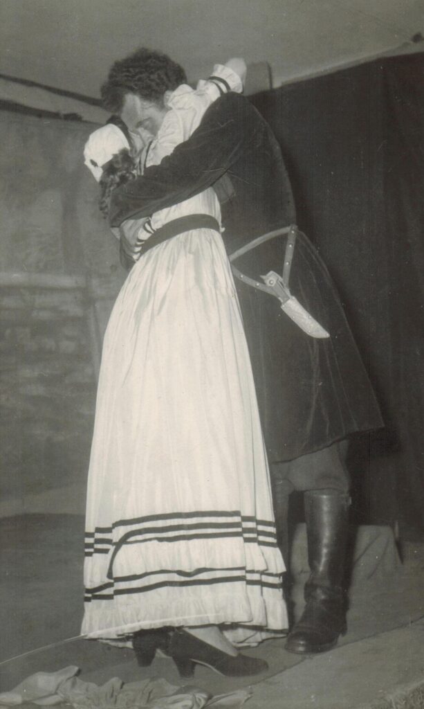Rendezte: Fehér József, Szereplők: Lovas Margit, Takács Erna, Dobosy Irma, Deák Irén, Bedecs Eszter, Bedecs Éva, Mikulics Aladár, Jakubecz Vilmos, Szabados István, Danajka János, Perlecky Miklós, Rák Károly, Szőcs Géza és Szőcs Ilona. Ezt a darabot 27-szer játszotta a faluban és a járásban az esztrádcsoport.