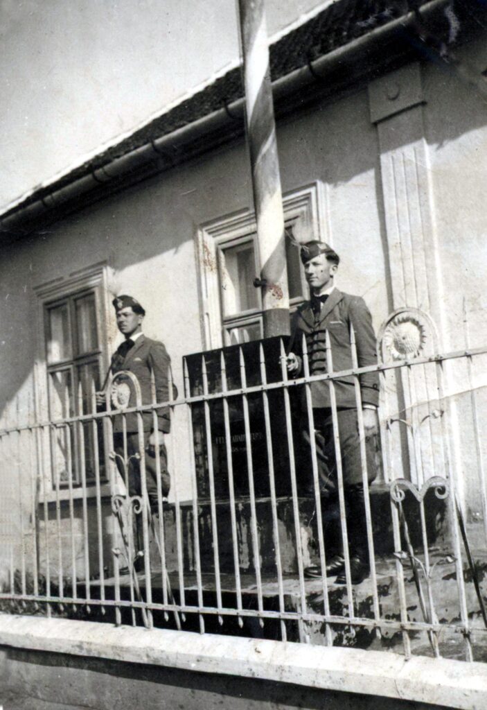 A fénykép 1939-ben készült az akkori községi hivatal épülete előtt, mely ma a Lilla Galériának és a Falumúzeumnak ad otthont.