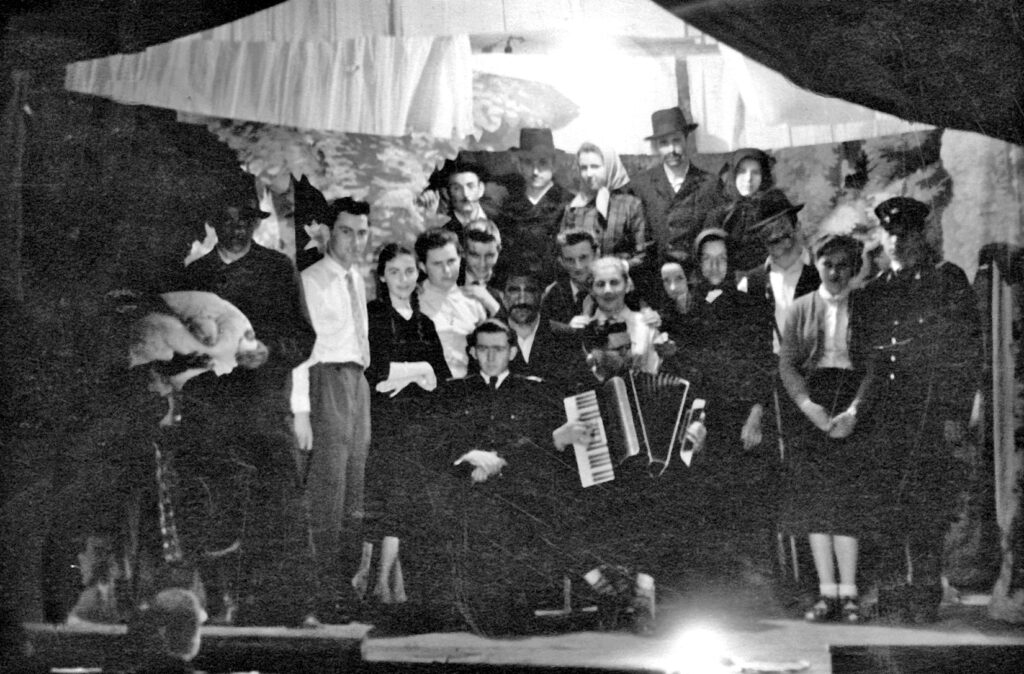 A hetényi színjátszók 1959-ben a Kincskeresők című darabot adták elő. A fénykép az akkori kultúrházban készült Hetényen.