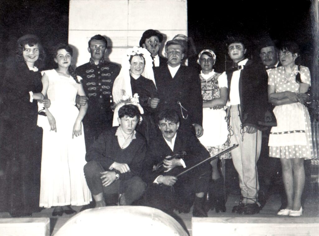 A 60-as évek végén játszották a darabot, melynek szereplői: balról Böjtös Erzsébet, Fehérné Csík Irén, Dékány György, Molnárné Gál Ida, Fehér András, Csintalanné Kis Erzsébet, Hajabács Gyula (?), Vörösné Papp Eszter, Fónad Ferenc(?)