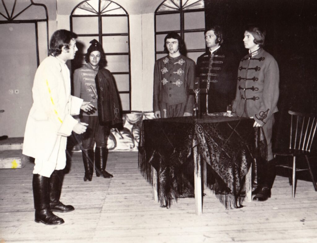 A darabot 1975-ben rendezte Bordán Kató. A képen balról Lucza Imre, Csintalan László, Sárai Elek, Szuh István, Szalai Miklós.
