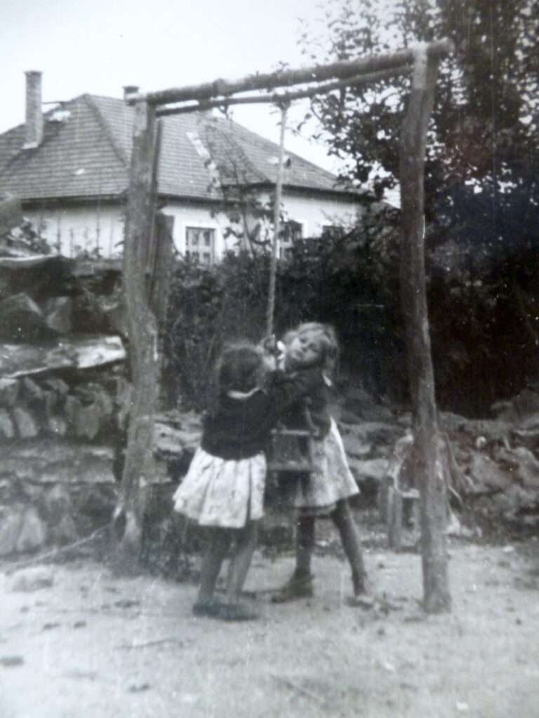 Két kislány veszekedik a hintán, mindkettő akarja, de egyikük sem enged.