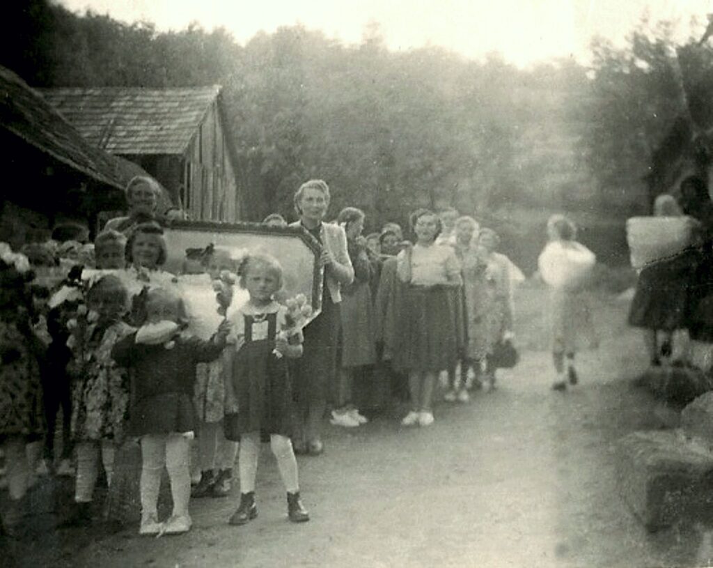 … A lakodalom előtt egy héttel a menyasszony holmiját vivő asszonysereg.