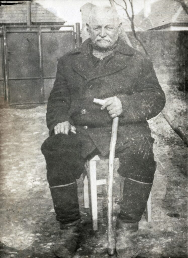 A képen módosabb gazda látható, népi elemekkel kiegészített polgáriasodó ruhában