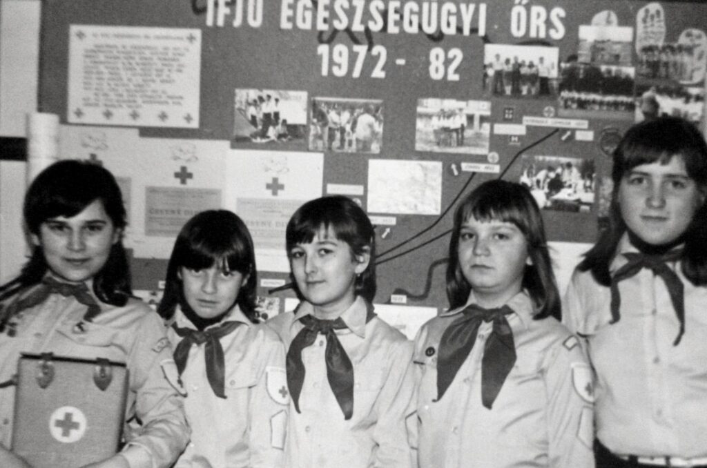 Az ógyallai Magyar Tanítási Nyelvű Alapiskolában Benkó Nándor természetrajz tanár vezetésével 1972-től működött az Ifjú Egészségügyi Őrs. A képen a 10 éves évfordulóra díszített faliújság előtt az akkori csapat lányai balról jobbra: Vastag Szilvia, Pápes Gyurcsovics Jolán, Darázsné Kiss Szilvia, Bachorec Ildikó, Gyurcsovics Szilvia. (Néhányuknak nem ismeretes a férjük utáni családnév). Az őrsök alapos felkészülés után a komáromi járási versenyeken vettek részt, és bizonyították tudásukat térképismeretek, elsősegélynyújtás, gyógynövény ismeretek, közlekedési táblák és más kategóriákban. Az ógyallai csapat sokszor végzett dobogós helyen.