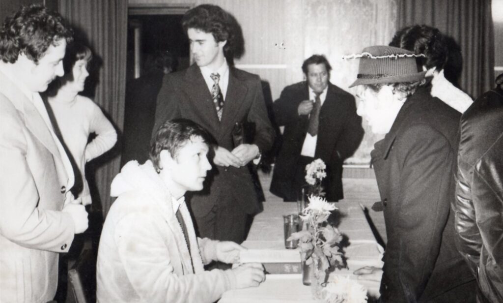 Balról jobbra: Kubica Ödön, Adamkó Mária, Batta György (író), Juhász Aladár, Kubica István, Karácsony László.