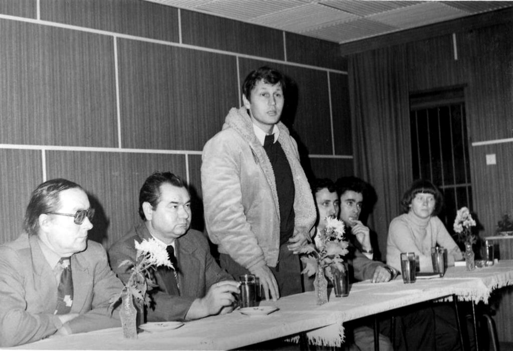 Balról jobbra: Kozmér Győző, Flaskár László, Batta György, Kubica Ödön, Juhász Aladár, Adamkó Mária.
