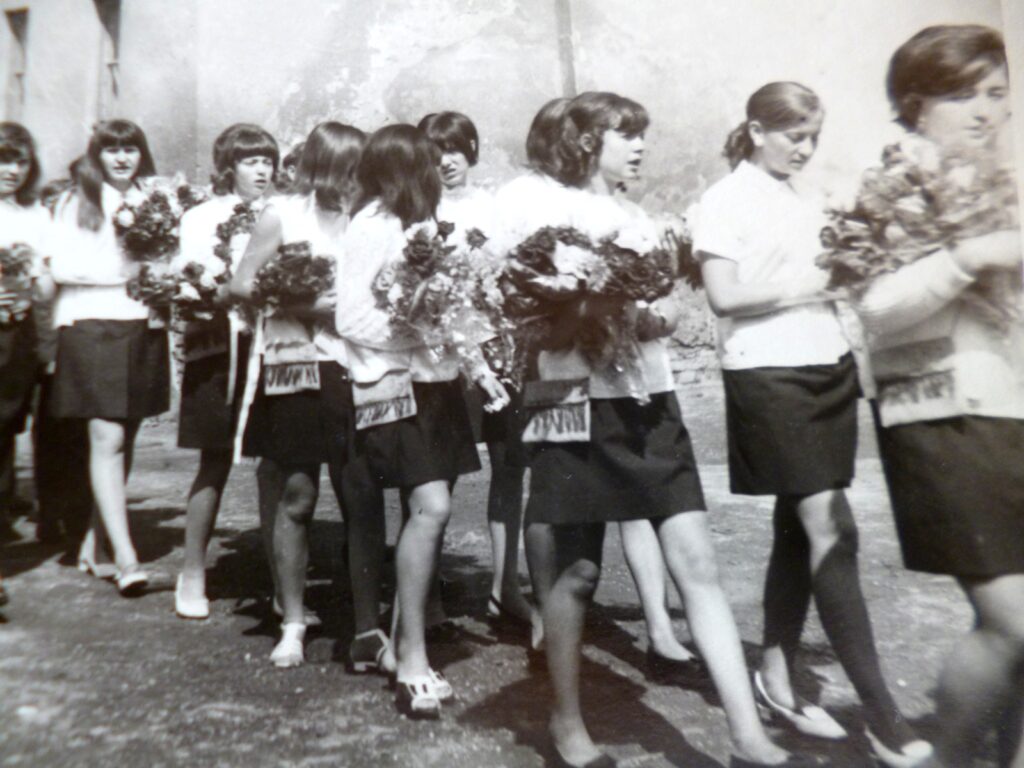 A Kilencéves Szalkai Alapiskola ballagó diákjai 1969-ben.