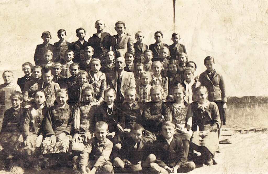 Kőhidgyarmati iskolások Benkő Endre tanítóval.