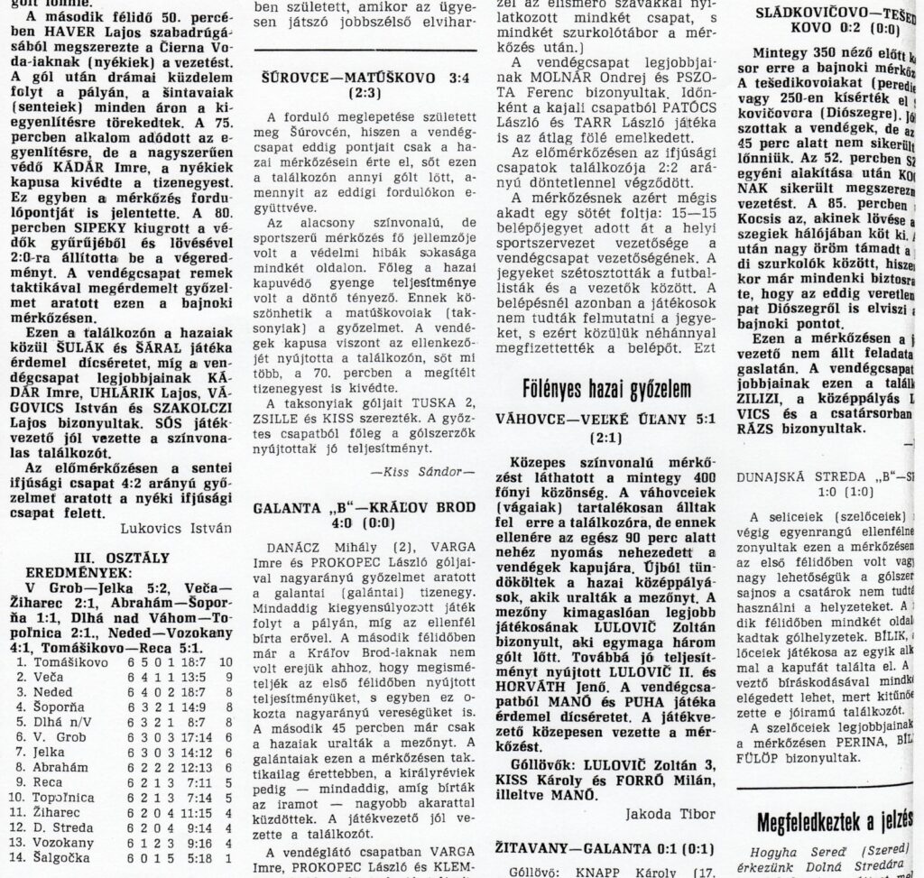 A vágai sportpályán, 400 főnyi közönség előtt a góllövők: Lulovics Zoltán 3x, Kiss Károly és Forró Milán, illetve Manó voltak.