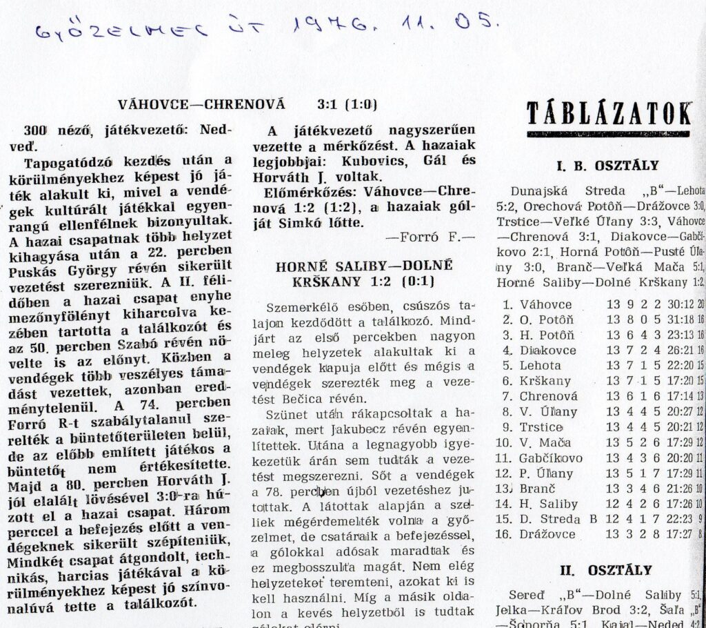 Hazai góllövők: Puskás György, Szabó Róbert, Horváth Jenő