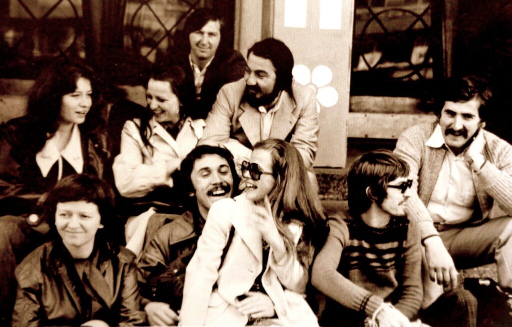 1984 májusa – KOMÁROM – JÓKAI NAPOK – itt vettük hírét Duray bebörtönzésének, aki akkor is megmentette a magyar iskolákat (a törvénytervezet a magyar iskolákban a tantárgyak szlovák nyelven való tanítását kerületi hatáskörbe utalva, adminisztratív lehetőségként tette volna lehetővé a fokozatos leépítést, közben Nyitrán már drasztikusan csökkentették a magyar tanítóképzést). Itt a képen még egy vidám társaság. Este Dusza Pista telefonon a feleségétől tudta meg, hogy a pánszláv bolsevista inkvizíció bebörtönözte Durayt.