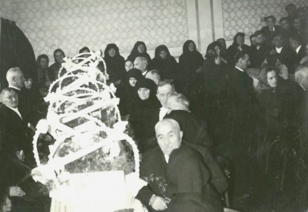 A képen a jubilánsok egy csoportja látható. Az 1960-as évek végétől szokás volt minden évben a farsangi időszakban együtt megünnepelni azokat a házastársakat, kiknek abban az évben volt a kerek házassági évfordulójuk (ezüst, arany vagy a gyémánt lakodalmasok).