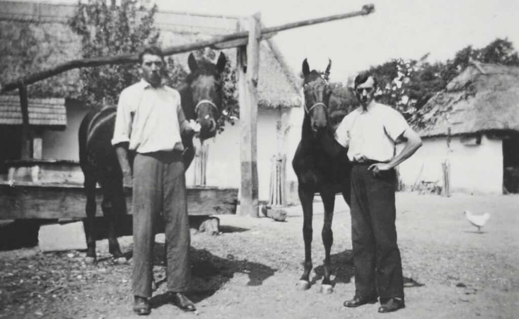 A képen Kálmán Mihály és Kálmán Sándor feldíszített lovaikkal. Háttérben a nádfedeles gazdasági épületek, melyeket 1977-ben bontottak le. Mihály megérte a 103 évet, Sándort halálos baleset érte 1960-ban, mikor a fehér-ági Kálmán sopa bontásakor rádőlt a fal. A kép 1930-as évek elején készült,