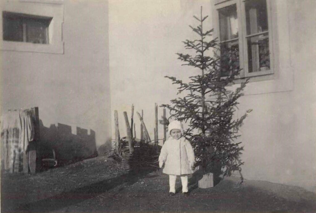 Pósa Zoltán gyermekkori fényképe a készülő karácsonyfa mellett Nemesradnóton.