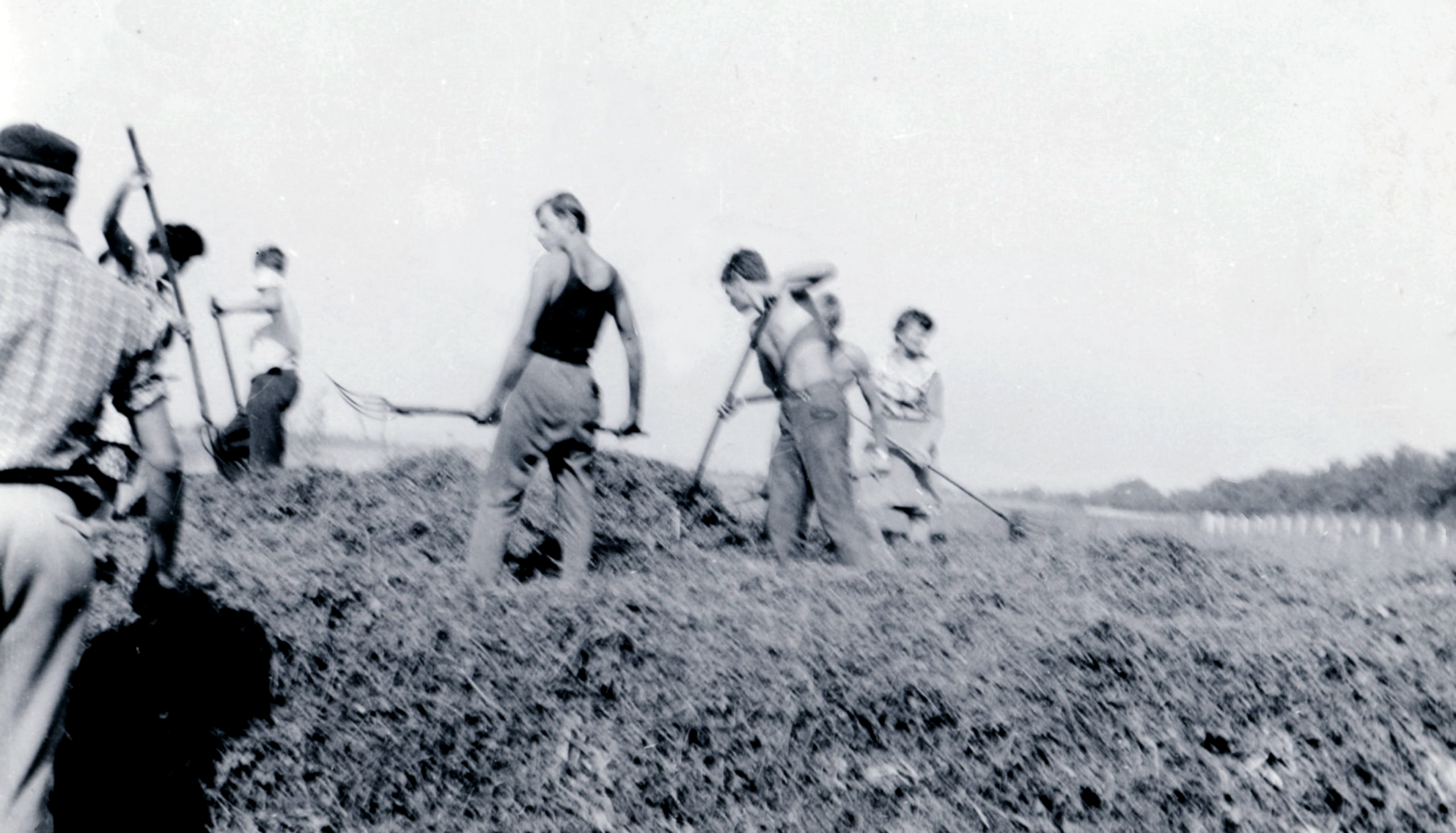 A mezőgazdasági iskola iskola diákjai a szénakazal tetején, valamikor a 60-as évek elején.