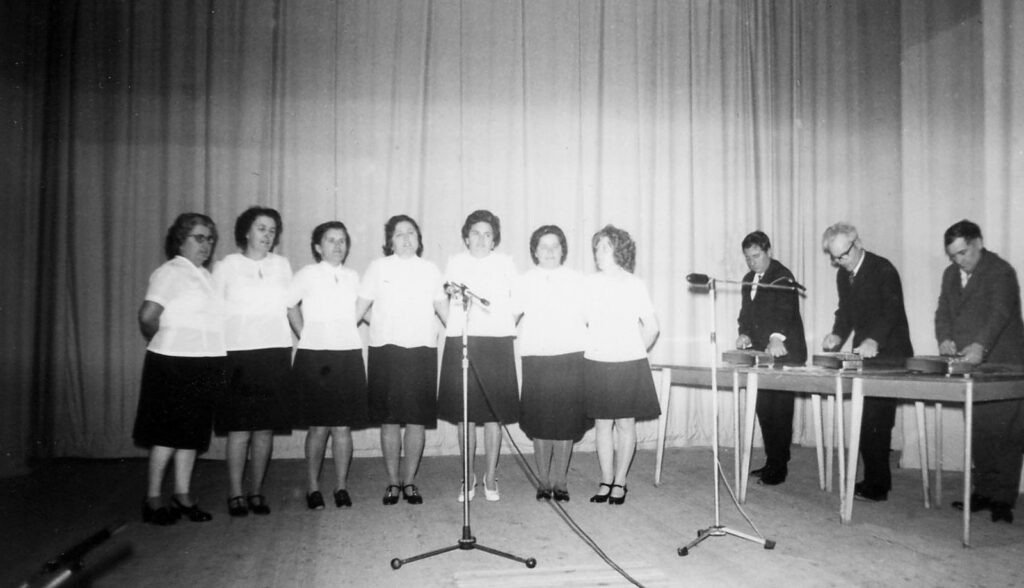 A karvai énekkar az 1980-as években Kolozsnémán, Gyallán, az énekversenyeken több díjat is nyert. Balról Gulyás Bözsi, Zsíros Irma, Bugany Magda, Nágel Manci, Simcsik Emília, Hlobík Jozefa, Terényi Irma, Kapás István, Csókás János, Kapás Ferenc.