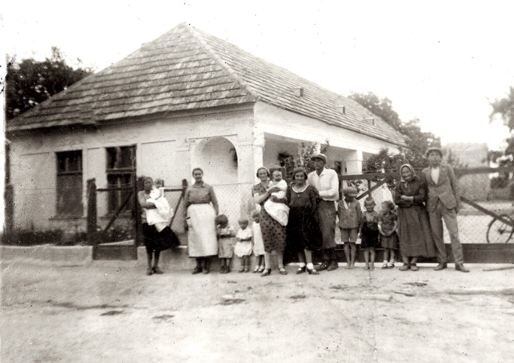 Balról Mihalik Margit, Józsikával, aki a háború alatt meghalt torokgyíkban. Psenák Mária, gyermekével Józsikával, XX, XX, Mráz Ilcsi néni gyermekével, Bözsikével, Muca néni varrónő, Sabla József (Tyatya), XX, Mráz Pistike, Margit Ilonka, Margitné Júlia – Julcsa néni, XX, 1933.