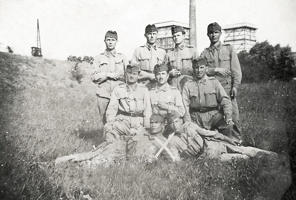 A hátsó sorban balról a második id.Baka Ferenc (szül.1919), mellette Sabla János.