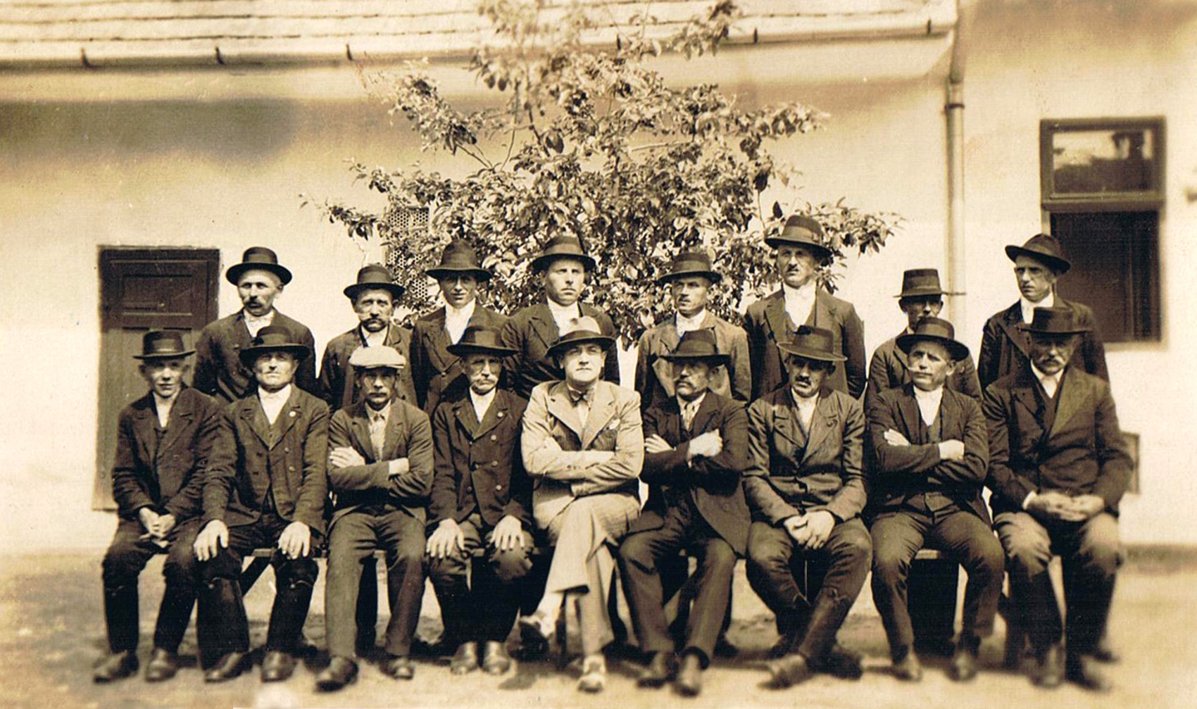 Az 1935-ös kőhidgyarmati képviselő testület, középen Morva Izidor jegyzővel.