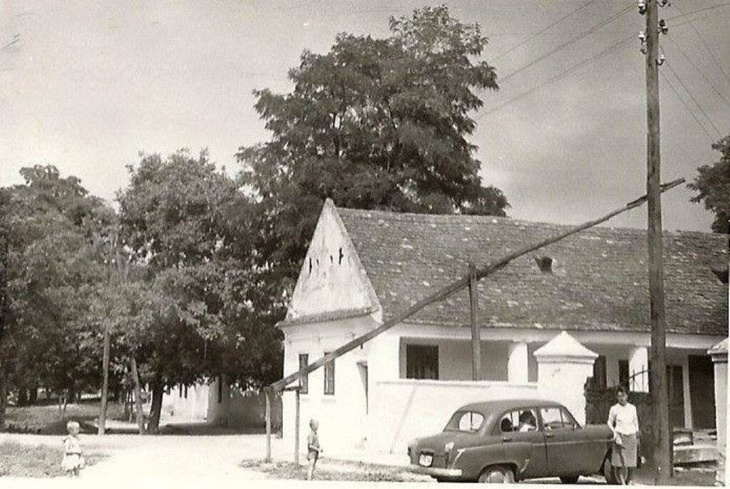 Kertalján készült a fotó, amin a Nagy család udvarán, a régi időkre oly jellemző gémeskút látható; a másik sarokházban a Fördős család lakott.