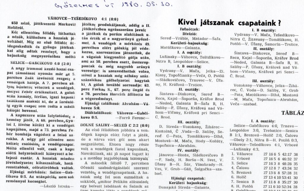 Cikkíró: Forró Ferenc, Győzelmes Út című hetilap, 1980. május 30-i számában