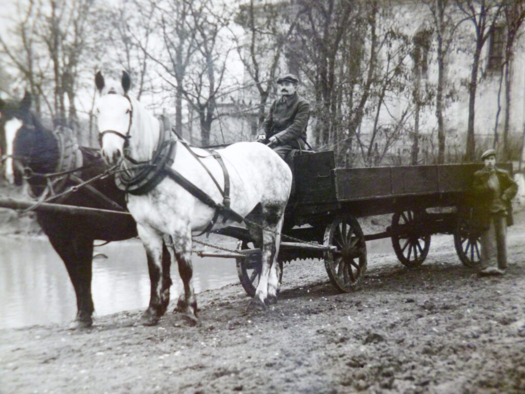 A kocsisok munka közben megálltak a tónál, hogy lovaikat megitassák. A kocsi mellett id. Gyurcsovics József az 1950-es években Haraszt majorban, amely félúton fekszik Bajcs és Perbete között.