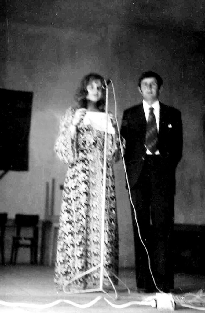 A kép az 1980-as évek elején, színdarab vagy valamilyen egyéb Csemadok rendezvény felkonferálása közben készült, Gömörpéterfalán.