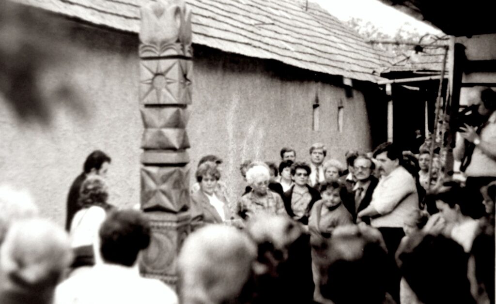 Kopjafa avatása Szepsi Csombor Márton tiszteletére a tájház udvarán 1989 tavaszán.