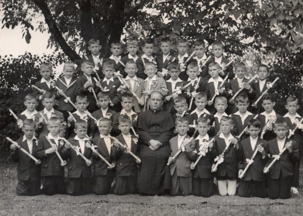 Állnak balról jobbra: Vedrődy József, Szitár Tóni (Puskás), Greznár József, Adamkó Vilmos, Kubányi Gábor, Lakatos Imre (plébános), Silný Tibor, Simkó Gyula, Takács Alfréd, Forró Tivadar, Boledovics János, Dudás László.