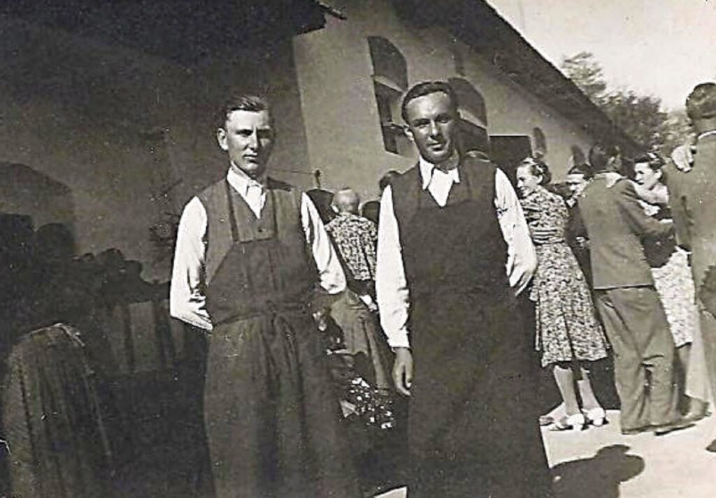 Két férfi, kötényben.