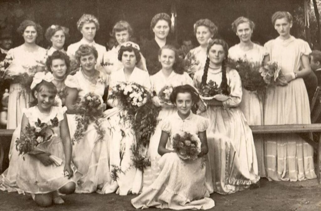Elöl guggolnak taksonyi lányok, a többi beazonosítatlan koszorúslány is taksonyi.