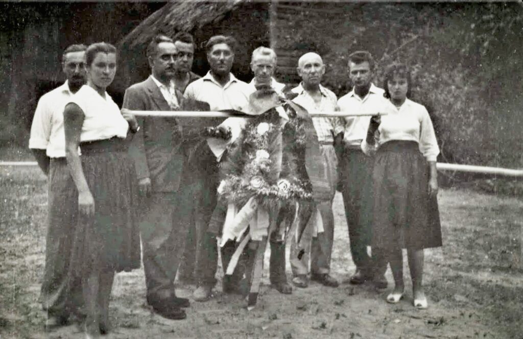 Aratási koszorú az 1950-es években. A képen Szuri Zoltán, Bucsek János, Tóth Márton