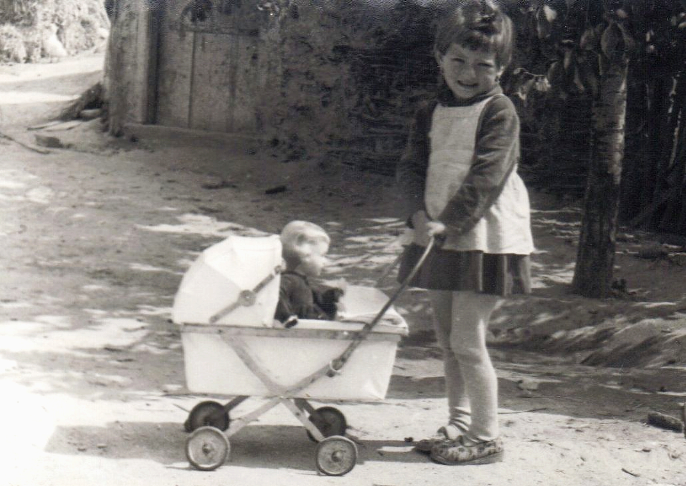 A kép 1964-ben készült, a kislány babakocsit tologat a község egyik utcáján.