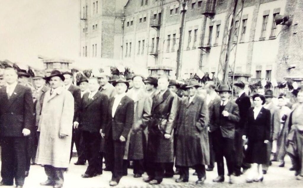 Nagybalogiak a május elsejei felvonulason Rimaszombatban az 1950-es években, mikor még ez kötelező volt… Fekete kalapban elöl id. Majoros Béla bácsi.