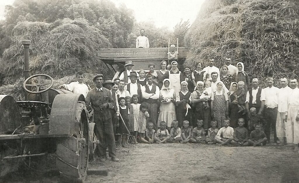 Poštornéban (ma Břeclav városrésze), a Galus testvérek gyárában készült cséplőgép, elképzelhetően Fordson traktor meghajtásával.