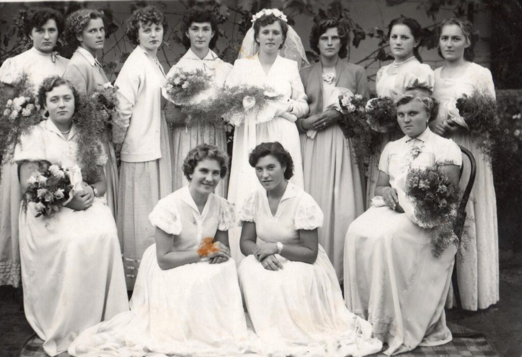 Menyasszony és a koszorúslányok az 1958. esztendőben