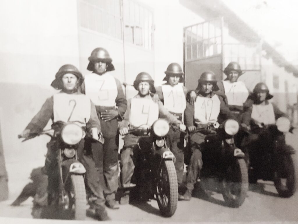 A ll. világháború idején Jászberényben, a Magyar motoros alakulatnál, katonatársaival. Az adományozó, Molnár Attila nagyapja.