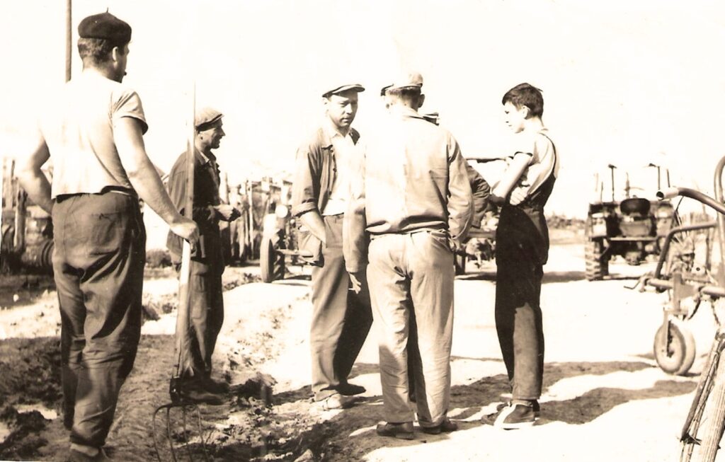 Traktorokkal, kézi szerszámokkal és munkakedvvel ellátva a Bátka-i Állami Gazdaságban, a Balogvölgyi óriás udvarán.
